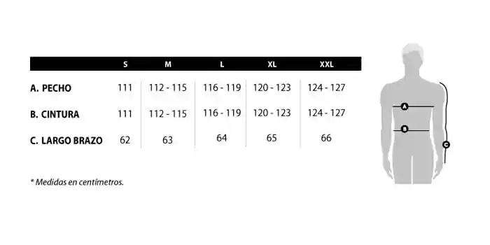 | Talla ropa | S, M, L, XL, XXL, XXXL |