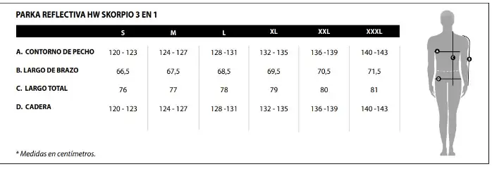 La Parka Reflectiva Hw Skorpio 3 en 1 Naranjo Fluor es una prenda versátil y funcional para entornos laborales exigentes. Con membrana de dos capas, es impermeable (5.000 mm) y respirable (3.000 mm), asegurando comodidad y protección. Su color fluorescente y bandas reflectivas de 2″ garantizan alta visibilidad. Costuras selladas impiden la humedad, y su tecnología I4t brinda información sobre seguridad industrial y procesos productivos, mejorando la protección y monitoreo del usuario.